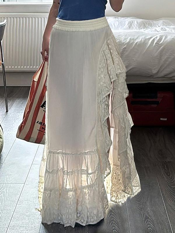 Einfarbiger Maxirock mit Rüschendesign