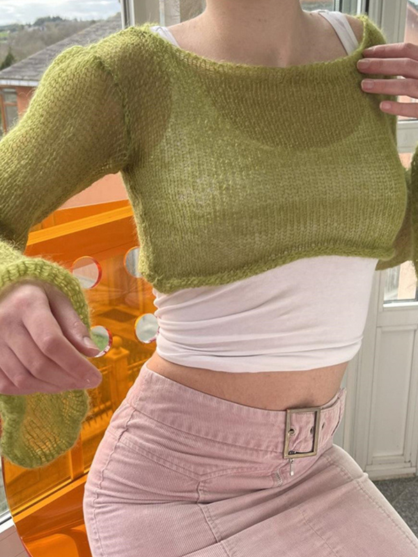 Einfarbige, hohle Langarmstrickwaren