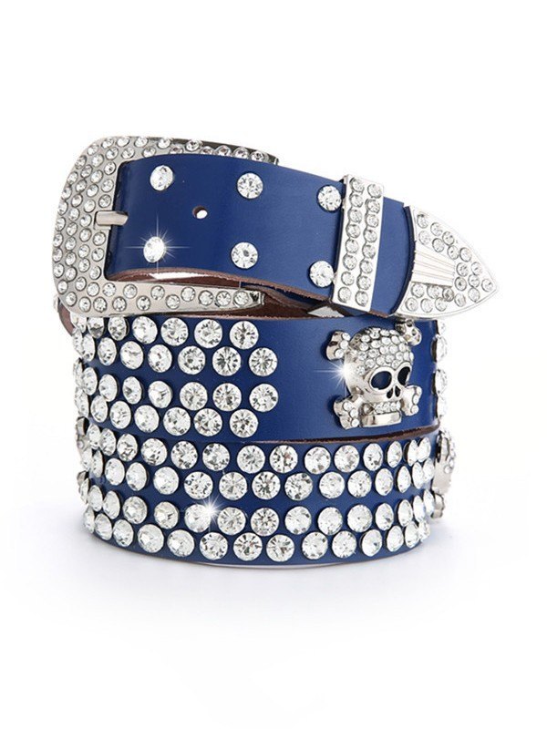 Gürtel mit Strass-Totenkopfschnalle